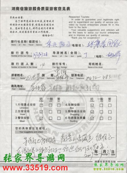 2009年7月28日吉林田先生一行14人接待質(zhì)量反饋單: