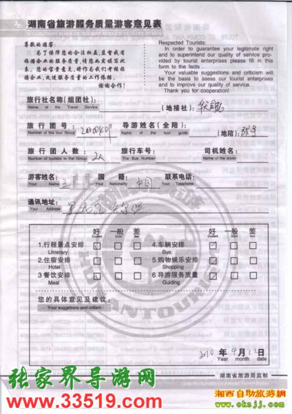 2010年4月12黑龍江王先生旅游質(zhì)量反饋