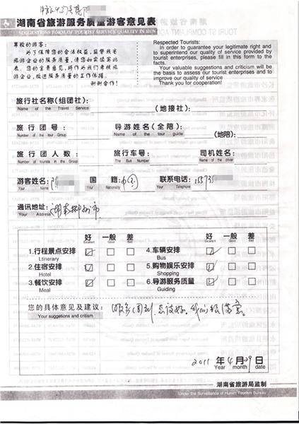 2011年4月29日陳先生旅游質(zhì)量反饋:服務(wù)周到,態(tài)度好,我們很滿意